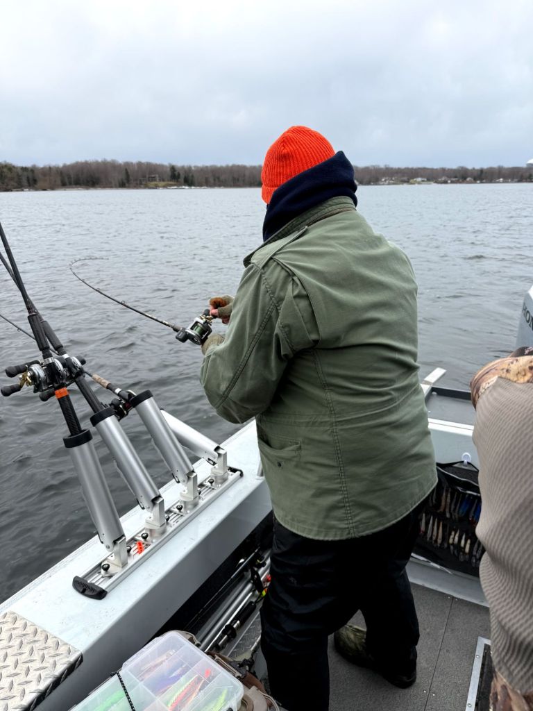 I agreed and Saturday morning, we set out to chase brown trout. The morning started off slow as we searched for warmer water. After only boating one fish we pulled the gear and made a run to the west.