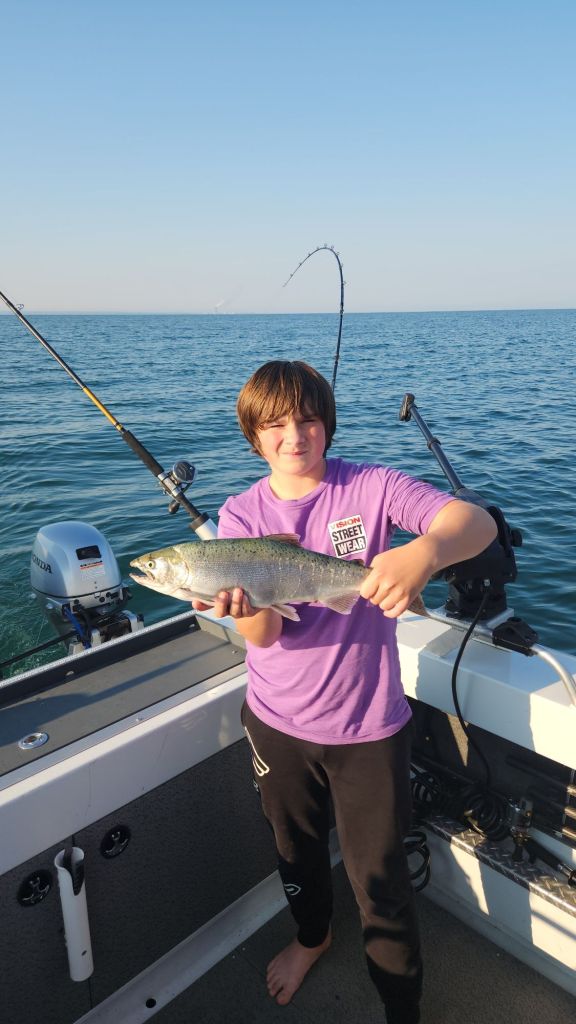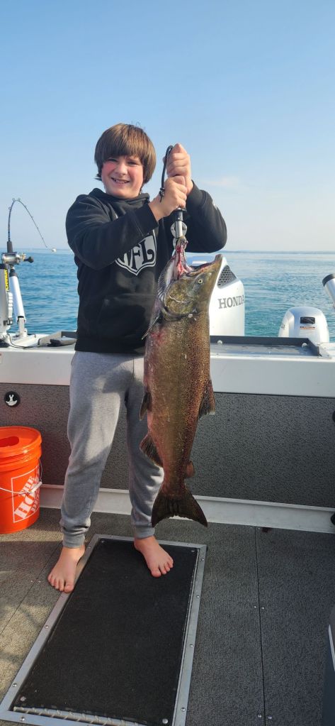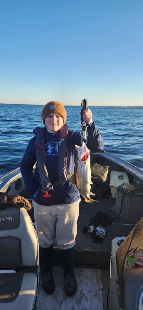 Sunday, after breakfast, I took my wife and kids out on Lake Ontario to try some brown trout fishing. This time of year, there are some locations where they start to stack up, and we wanted to see if they were there.
