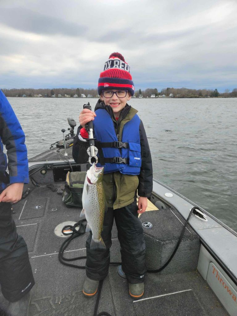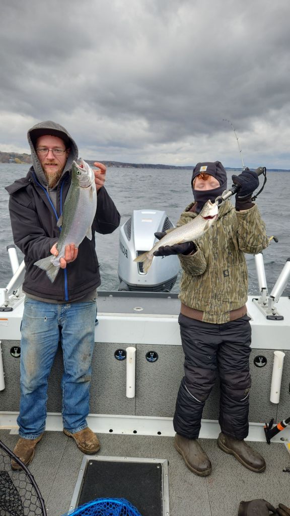 The boat being on the trailer means we can fish Lake Ontario for brown trout, Oneida Lake for walleye or Cayuga Lake for lakers, browns, atlantics and rainbows. I will be fishing until the launches freeze so if you want to get out give me a call. Don’t worry about being cold the full enclosure keeps everyone comfortable and ill bring the heater just in case.
