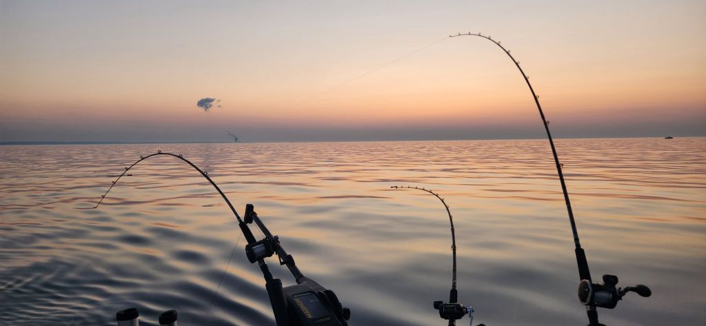 It turned out that was not true. After a while with no more bites, I put the down riggers out and both a 3 and 4 color lead core. We now had 6 rods in the water and the bites started coming.