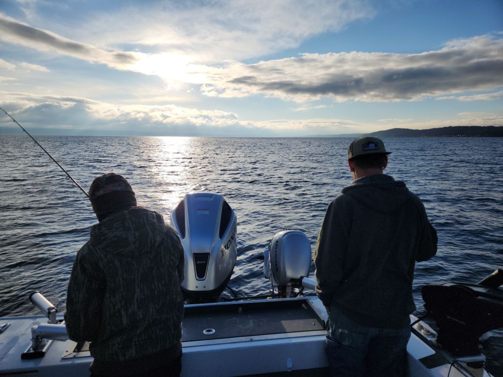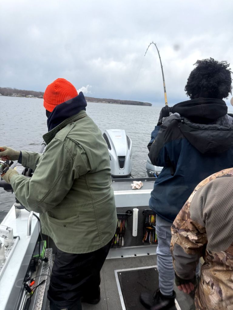 Saturday I took a break from deer hunting to take Russell and his son Shawn on a Cayuga Lake fishing trip. Russell has booked the trip as Shawn’s birthday present.