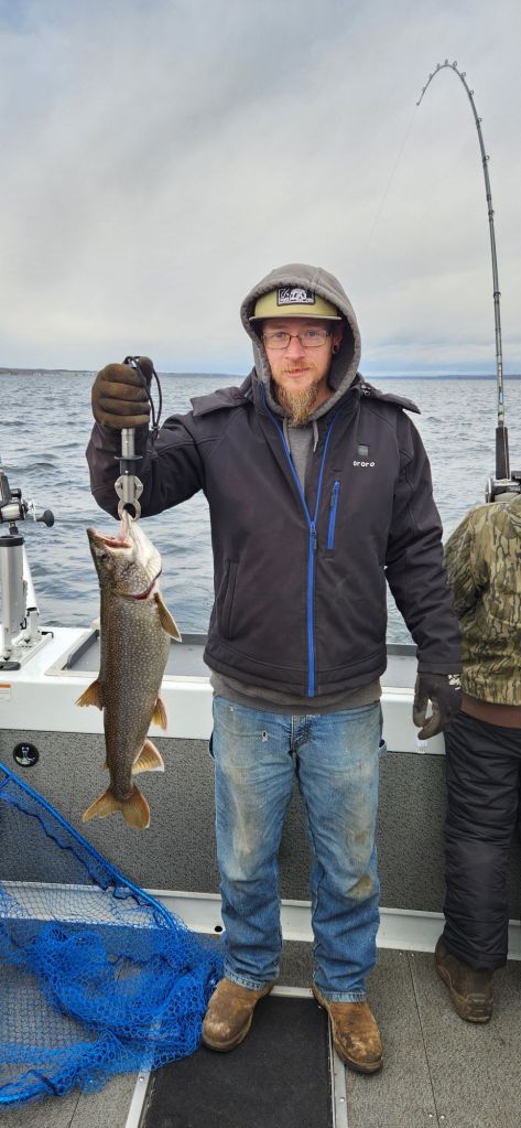 When Russell booked the trip, he said they wanted to jig for lake trout. I told him we would plan for that, but I’d bring some trolling gear just in case. I knew if we found the lakers grouped up, we would get them. However, after 4 spots, we knew we needed to go searching.