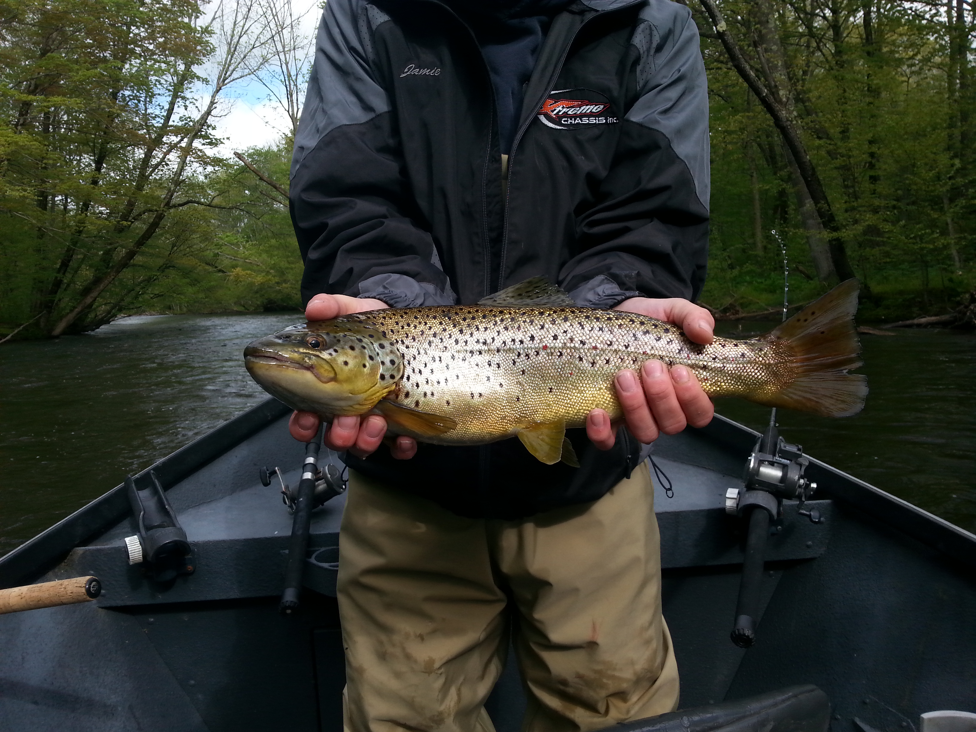 There are a good number of streams that hold resident brown trout. I float my raft or walk into these streams during the summer spring and summer months. These trips are often combined with other species such as smallmouth bass or rainbow trout. One special stream offers brown trout, brook trout, rainbow trout, and smallmouth bass.