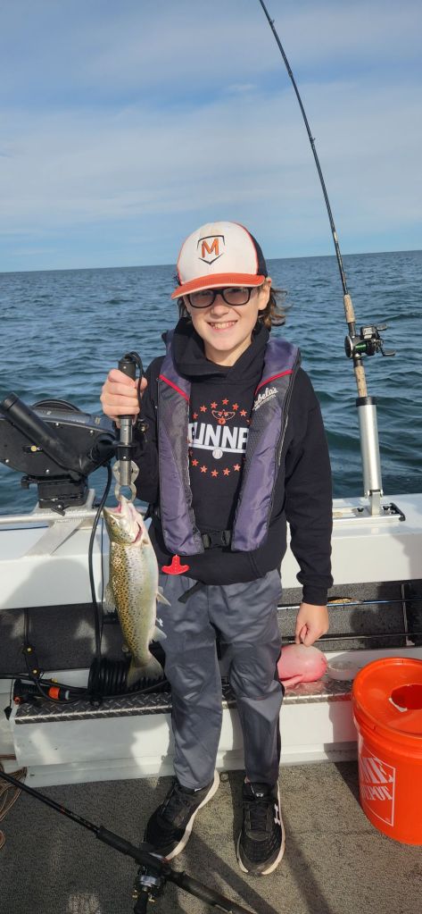 Sunday, after breakfast, I took my wife and kids out on Lake Ontario to try some brown trout fishing. This time of year, there are some locations where they start to stack up, and we wanted to see if they were there.