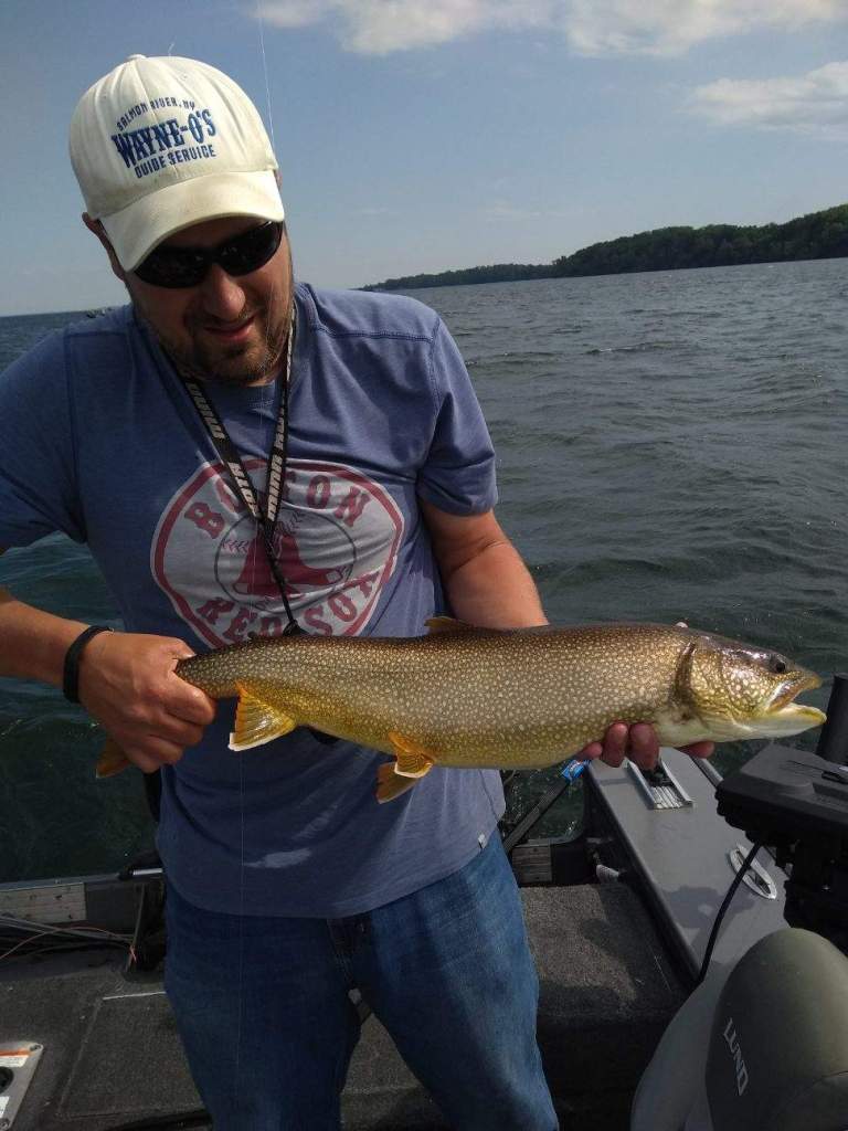 The fish in Cayuga lake also make excellent table fare. I didn’t think I liked the taste of lake trout until I had one from Cayuga. Another bonus is that a blow off day on Cayuga is very rare. It does get bumpy at times but it is normally still fishable. The nice part about trailering the boat is we have the option to fish the end of the lake the wind is coming from if it is going to be rough.