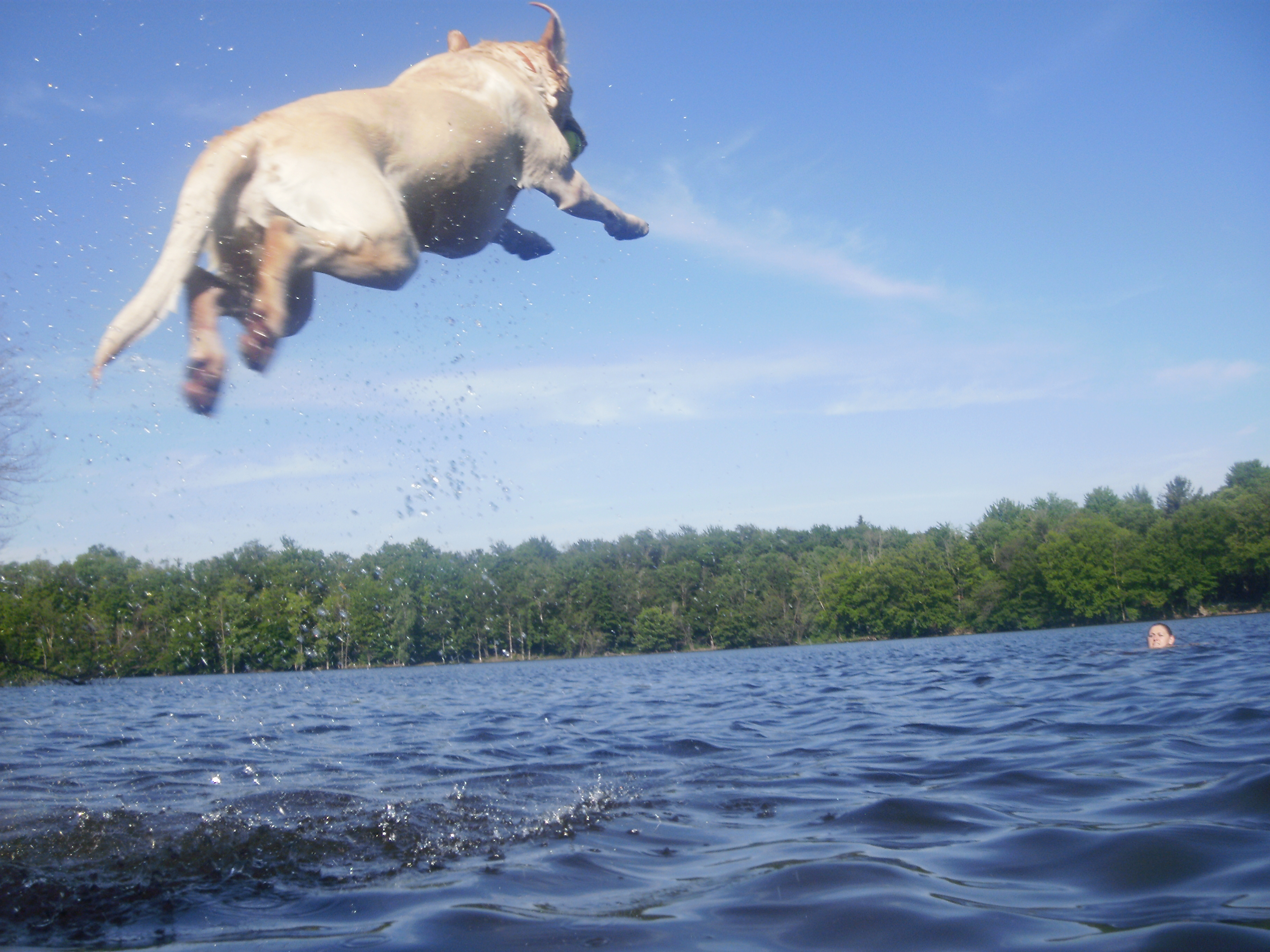 - This is a great shot of my Yellow Lab launching off the dock into the Salmon River Reservoir at the Cross Road Inn and Cabins in Redfield NY.