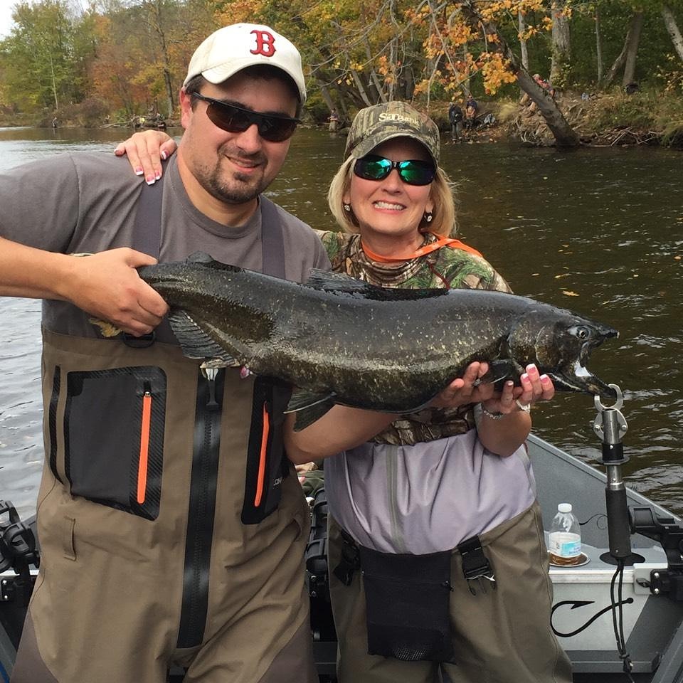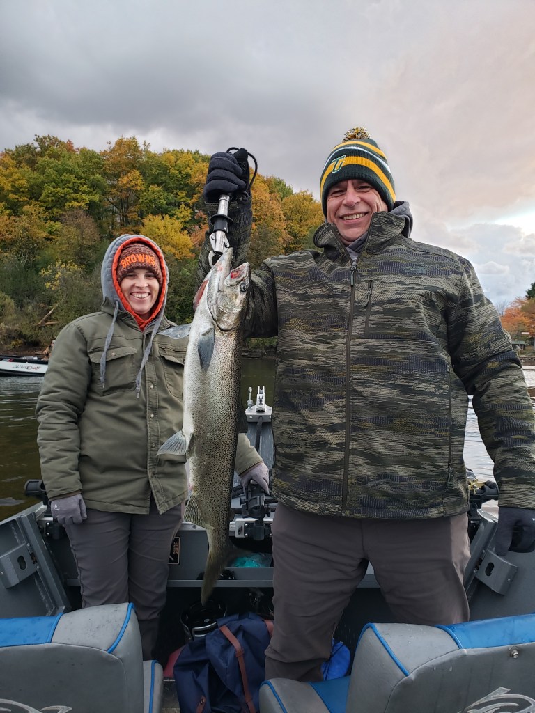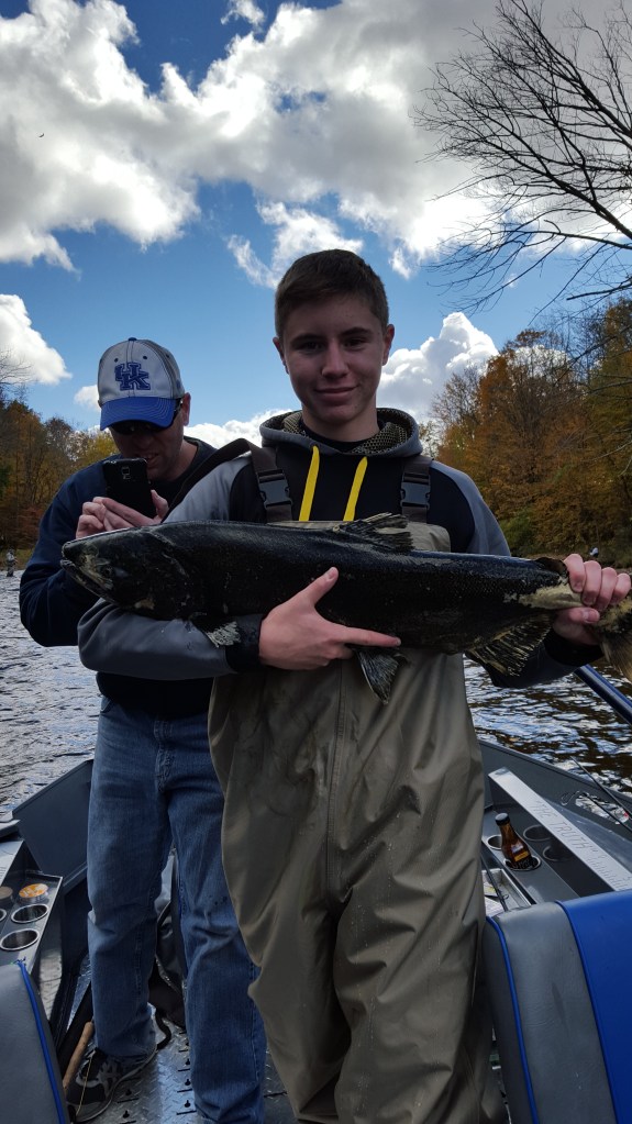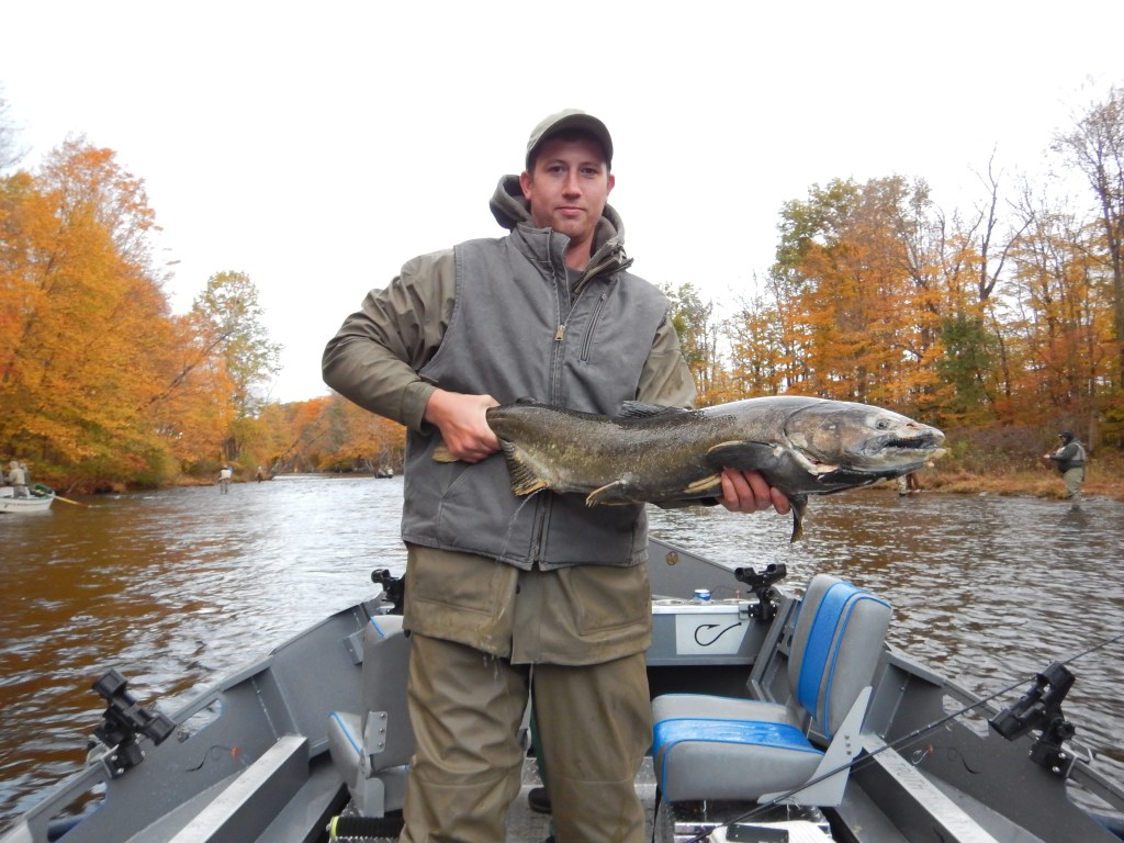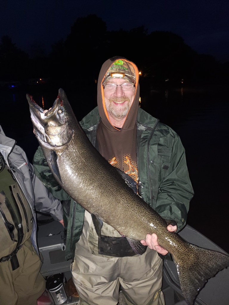 From mid September through the end of October I offer trips on the drift boat on the Salmon, Oswego, and Black River. Salmon River trips are day time trips starting well before daylight in order to get our spot. Oswego and Black River salmon trips can be morning, evening, or night as it is legal to fish after dark on these rivers.