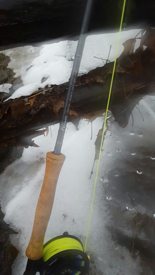 I spent the majority of the day inside watching it rain. I did take the time to spool up a reel with new 10 weight line and mount it on a 10 weight rod I had forgotten I bought last fall.