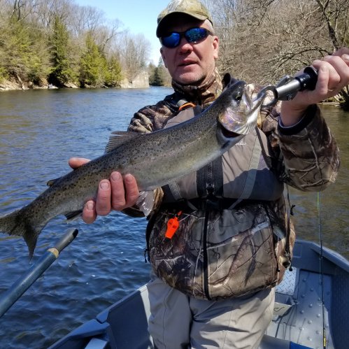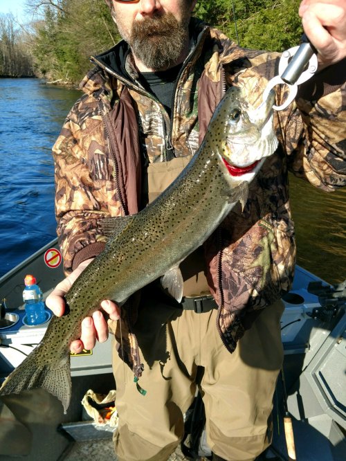 There really isn’t a lot to report other than the fishing is good and getting even better. Everyone is catching fish right now. With a good number of fish left in the hatchery this is going to be an extended season for sure. I believe the colder temperatures have caused the fish to trickle out of the hatchery rather than come in large groups. Add these fish to the fish that spawn in the river and it makes for a great season that will last into mid May for sure.